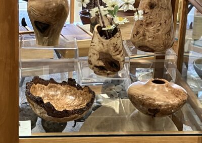 Kip specializes in bowls, clocks, live-edge, and especially one-of-a-kind pieces crafted from the wood burls resulting in unique grain designs not seen in the rest of the tree. He works mostly with locally sourced maple and cherry woods.